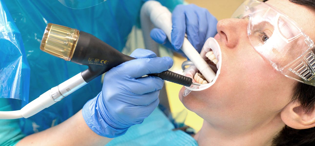 Лазерное отбеливание — в стоматологии «Дента» используется импортный аппарат лазерного отбеливания. Практикуется нанесение на зубы пациента специального геля, отбеливающий эффект которого приводится в действие лазерным лучом. Способ безболезнен и не вызывает у пациента неприятных ощущений.